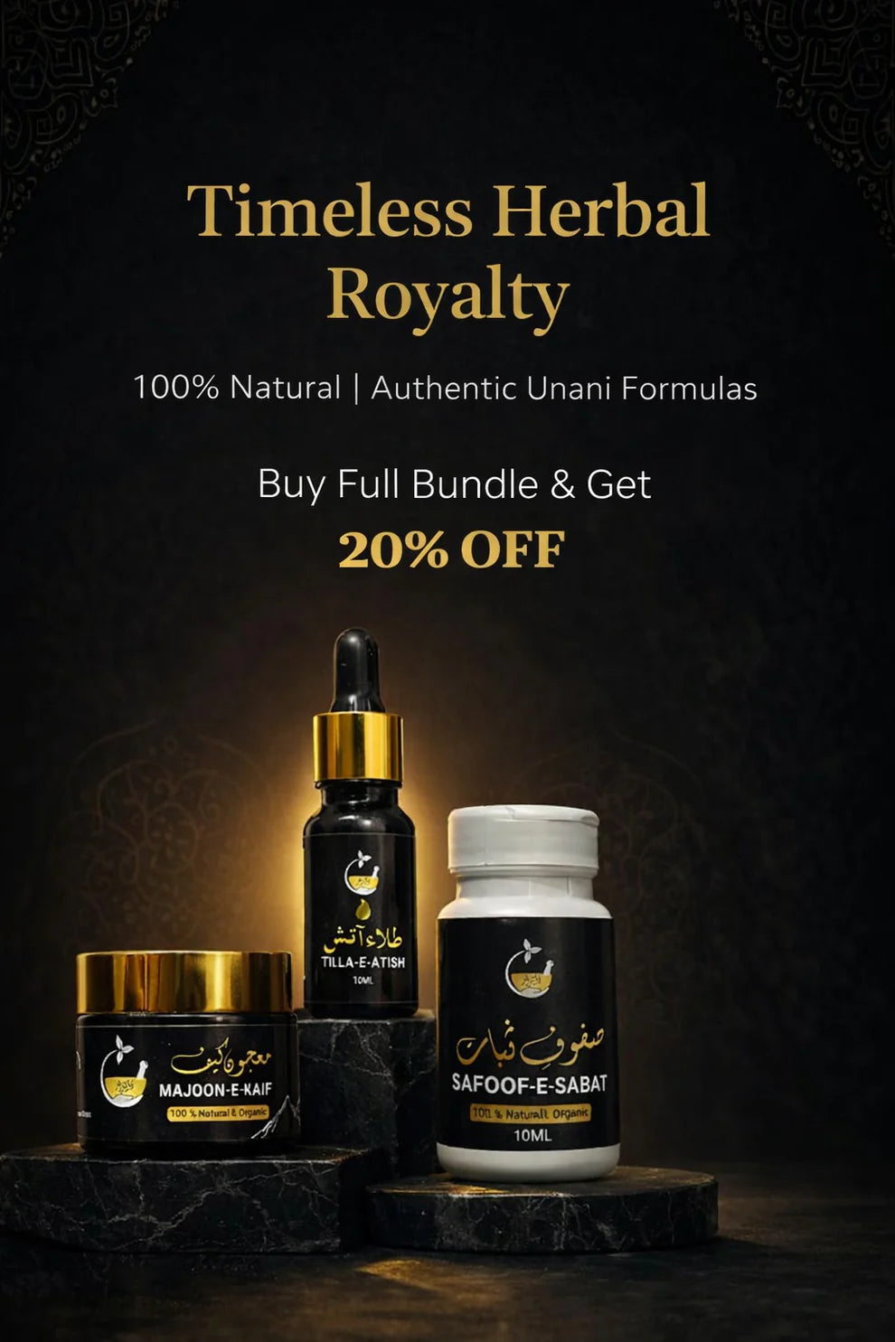Say goodbye to weakness and fatigue. Our Safoof-e-Sabat is a time-tested herbal remedy that builds internal power and keeps your body in perfect "Sabat" (stability).